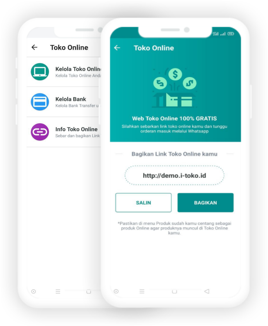 By using the i-Toko Application, you automatically get a sophisticated online store website that is integrated with your i-Toko application.